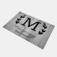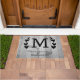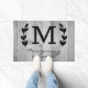 Hornos rústicos de madera gris claro y de madera clara con su nombre familiar personalizado y letra monograma en gris oscuro. Disfrute de una elegante moda de granja en su porche delantero este otoño con este elegante porche de madera y laureles. Dar como un gran regalo para recién casados o nuevos propietarios de casas.