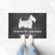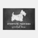 Los " terrieres escoceses estropearon aquí", silueta linda del perro de Scotty y texto rendidos en un tiza-estilo del vintage en un fondo de la pizarra.