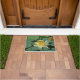 Esta alfombra de puerta presenta una hermosa flor de loto que crece en un estanque de Connecticut.