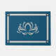 Este felpudo presenta un borde de estilo Art Déco y una hermosa flor de loto... en plata sobre un fondo azul oscuro.