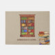 Doormat, amante de los libros divertidos, con una biblioteca acuarela llena de libros antiguos, una pila de libros antiguos, un fondo falso de burlap y las palabras editables, VUELVAN MÁS TARDE. Disponible en dos tamaños. Málese o dé este doormat de personalizable a su bibliófilo/ratón de biblioteca favorito. De 369MyName. #FunnyDoormat #BookLover