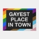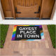 Bienvenidos a los invitados con orgullo usando este vibrante felpudo de colores con franjas de color inclusivas LGBT y la lúdica frase "el lugar más gay de la ciudad" en negrita contra un bloque negro. Perfecto para añadir un toque de color y personalidad a su entrada, este único felpudo celebra el amor y la inclusión. Los compradores pueden encontrar diseños más divertidos y coloridos en Bunny Prince Design, o contactarse si están buscando una creación de personalizados que actualmente no está disponible en la tienda.