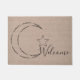 Luna y estrellas celestial Cita de bienvenida diciendo hipster faux linen burlap jute fondo doormat.