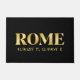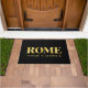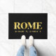 Lux front doormat cuenta con coordenadas de mapa de latitud y longitud de Roma, Italia en fuentes doradas sobre fondo negro.