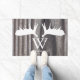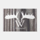 Viejo fondo de impresión de maderas grises, con silueta de antílamos de alce blanco y su nombre familiar personalizado y monograma en blanco.