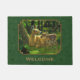 Dos venados blancos en el bosque durante la primavera. Una doncella blanca yace en la hierba verde al lado de una cala y lame su flor recién nacida mientras la luz del sol arroja a través de los árboles para calentarlos. Obra de arte realista creada a partir de una pintura al óleo original de la vida silvestre y la artista equina Crista S. Forest.