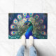 Este Doormat presenta un magnífico diseño de pavo real con maravillosos colores verde azulados, reales azules y dorados. Motivo romántico y elegante. El hermoso Doormat decorará su apartamento o entrada a la casa. Mi idea, creada con IA. Diseñado por AIbyMarion