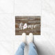 Muestra algo de orgullo en el estado de casa con este adorable felpudo rústico de madera pintada con letras "home" en letras de caligrafía blanca con un mapa de silueta del estado de Maine representando la letra "O". Un ilustracion de corazón rosa dentro del mapa de estado completa el diseño; puedes cambiar la posición del corazón a tu ciudad natal abriendo la herramienta de diseño y arrastrando la forma del corazón a tu lugar favorito. Personalice con su ciudad natal, su nombre familiar y el año establecido para crear un toque final perfecto para su puerta principal, o un regalo inolvidable para su hogar.