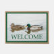 Dos patos mallard, una alcachofa y una hembra, nadan juntos en un estanque de Alaska. También aparece el texto "BIENVENIDA". El Mallard, Anas platyrhynchos, se reproduce en las Américas templadas y subtropicales, Europa, Asia y el Norte de África, y se ha introducido en Nueva Zelanda y Australia. Los machos tienen una cabeza verde o azul brillante, mientras que la de la hembra es marrón claro. El gregario Mallard vive en humedales y come plantas de agua. El Mallard es el ancestro de la mayoría de los patos domésticos. El Mallard fue una de las muchas especies de aves descritas originalmente por Linnaeus en su obra del siglo XVIII, Systema Naturae, y aún lleva el primer nombre binomio que se le dio. El nombre deriva del viejo malarte francés o mallart "salvaje drenaje", aunque su derivación final no está clara. Puede estar relacionado con el nombre masculino Madelhart del Viejo Alto Alemán, pistas que yacen en las formas alternas en inglés "maudelard" o "mawdelard". Con frecuencia, los malhechores se mezclan con sus parientes más cercanos del género Anas, como el Pato Negro Americano, y también con especies más distantes, por ejemplo el Pintail Norte, lo que conduce a varios híbridos que pueden ser totalmente fértiles. Esto es bastante inusual, e indica que el Mallard evolucionó muy rápidamente durante el Pleistoceno tardío. Parece que los mallard están más cerca de sus parientes indo-pacíficos que de los estadounidenses que juzgan por biogeografía. Teniendo en cuenta los datos de la secuencia D del ciclo de mtDNA, es posible que hayan evolucionado más probablemente que no en el área general de Siberia; los huesos de mallard aparecen de manera bastante abrupta en los restos de alimentos de antiguos humanos y otros depósitos de huesos fósiles en Europa, sin un buen candidato para una especie precursor local. La gran paleosubespecie de la era del hielo que conformó al menos las poblaciones europea y occidental de Asia durante el Pleistoceno ha sido llamada Anfilia chos palaeoboschas. El Mallard mide entre 20 y 26 pulgadas de largo (de los cuales el cuerpo es de alrededor de dos tercios), tiene una envergadura de 32-39 pulgadas y pesa entre 1,6 y 3,5 libras. El tamaño del Mallard varía clínicamente, y los pájaros de Groenlandia, aunque más grandes que los pájaros más al sur, tienen facturas más pequeñas y son más calurosos. A veces se separa como subespecie, el Mallard de Groenlandia (A. p. conboschas). El Mallard es un raro ejemplo de la regla de Allen y de la regla de Bergmann en las aves. La regla de Bergmann, que establece que las formas polares tienden a ser más grandes que las relacionadas con climas más cálidos, tiene numerosos ejemplos en aves. La regla de Allen dice que los apéndices como las orejas tienden a ser más pequeños en formas polares para minimizar la pérdida de calor, y mayores en equivalentes tropicales y desérticos para facilitar la difusión del calor, y que los taxa polares son más calurosos en general. Los ejemplos de esta norma en las aves son raros, ya que carecen de orejas externas. Sin embargo, la lista de patos está muy bien abastecida de vasos sanguíneos y es vulnerable al frío. Los machos reproductores son inconfundibles, con una cabeza verde botella brillante, una parte trasera negra y una naranja amarillenta (que también puede contener algo de ley roja) cubierta de negro (a diferencia de la cuenta negra/naranja en las hembras). Tienen un cuello blanco que delimita la cabeza de la pechuga marrón morado, alas marrones grises y un vientre gris pálido. La cola oscura tiene bordes blancos. La mallard es una maloliente marrón, como la mayoría de los patos que se pudren en las hembras, y tiene mejillas, ceja, garganta y cuello con una corona más oscura y rayas en los ojos. Al eclosionar, el plumaje colorante del pato es amarillo en la parte inferior y en la cara (con rayas en los ojos) y negro en la parte posterior (con algunas manchas amarillas) hasta la parte superior y posterior de la cabeza. Sus piernas y su factura también son negras. A medida que se acerca un mes, el desplome del patito empezará a ser débil, más parecido a la hembra (aunque su plumaje está más estratificado) y sus piernas perderán su color gris oscuro. Dos meses después de la eclosión, el período de novato ha terminado y el pato es ahora un joven. Entre los tres y cuatro meses de edad, el menor puede finalmente empezar a volar ya que sus alas están completamente desarrolladas para volar (lo que puede confirmarse con la visión de plumas de especulum púrpura). Su ley pronto perderá su color gris oscuro y si es masculino o femenino puede finalmente distinguirse por tres factores. El color de la factura es amarillo en los hombres, negro y naranja en las mujeres. Las plumas mamarias son de color rojizo para los machos, marrón para las hembras. La pluma de cola central de los pájaros machos (llamada pluma de desagüe) es curvada; las hembras tienen plumas rectas. Durante el último período de madurez hasta la edad adulta (de 6 a 10 meses de edad), el desplome de las niñas juveniles sigue siendo el mismo, mientras que el desplome de los jóvenes varones cambia lentamente a sus colores reconocibles. Este cambio de plumaje también se aplica a los machos machos macho adultos cuando entran y salen de su plumaje no reproductivo (eclipse) al comienzo y al final del período de moldura de verano. La edad adulta de los malayos es de 14 meses y la esperanza de vida media es de 20 años. Es una especie ruidosa, el macho tiene un llamado nasal, y un silbato agudo, mientras que la hembra tiene un cuac más profundo estereotipado asociado con los patos. El Mallard está ampliamente distribuido en todo el hemisferio norte, Norteamérica desde el sur y centro de Alaska hasta México, las Islas Hawaianas y a través de Eurasia, desde Islandia y el sur de Groenlandia y partes de Marruecos (norte de África) en el oeste, Escandinavia al nort