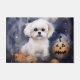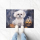 Felpudo Maltés de Halloween con calabazas aterradoras