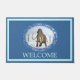 Mamut Wooly en un típico entorno de tundra de la era del hielo. También aparece el texto "BIENVENIDA".