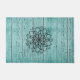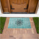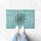 El gráfico de mandala lineal negra con fondo de madera azul templado hace de esto una alfombra acogedora para casi todo el mundo