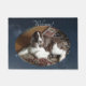 Este es un felpudo que presenta una fotografía original de un espátulo de la Mancha inglesa, riquísima, hepática y blanca, de fondo azul estrellado.