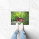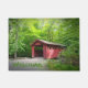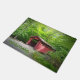 Esta alfombra de la puerta presenta un puente cubierto en Chatfied Hollow en Killingworth, Connecticut.