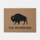 La alfombra de bienvenida de Buffalo Lover. Personalice el texto predeterminado con el nombre de su familia, Bienvenida o suprímase si no prefiere ningún texto. Este diseño de silueta de búfalo fresco es un regalo maravilloso para un fiesta que hace el calor del hogar, recién casados, vacaciones y la mayoría de las ocasiones. Un regalo divertido para los búfalos. Hay más colores disponibles. Visita el mundo Doodle de Jenn para ver más doormatas de amantes de los animales y decoración de casa.