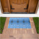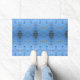Doormat estético azul con un patrón de superficie costera oriental asiática con una pieza del poema visual "Scar Collector" que fue publicado originalmente en el Volumen I de la serie de libros fotográficos Diamond Dust From the Black Sea. Dormitorio rústico con un diseño costero azul para la costa de lagos de verano o propiedades de inspiración oceánica.