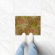 Doormat en un vintage William Morris, arte Nouveau, impresión del damasco de la maravilla de hojas y de flores, digital aumentada y coloreada, en las sombras del oro de cobre del marrón y de la mostaza, acentuadas con anaranjado y amarillo, en un fondo marrón oscuro