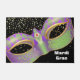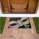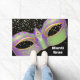 Este felpudo se muestra en negro con una estampada de estrellas doradas con una estampada festiva de la máscara del carnaval de Mardi Gras. Personalizar este artículo o compra tal cual.