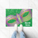 Este felpudo se muestra en verde con una estampada de estrellas doradas con una estampada festiva de la máscara del carnaval de Mardi Gras. Personalizar este artículo o compra tal cual.