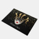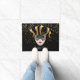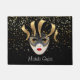 Este doormat se muestra con un fondo de color negro con estrellas de oro con una huella de máscara de carnaval festivo de Mardi Gras. Personalizar este artículo o compra tal cual. Imagen de stock