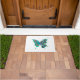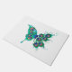 Mariposa pintada de forma artística, ficticia, verde, detallada, con plumas verdes, hermosas, de pavo real sobre fondo blanco.