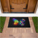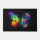 Arcoiris, mariposa monarca luminosa, pintada de forma artística con ramo de iridiscente, rosas brillantes y luminiscentes sobre fondo negro. Mariposa arcoiris.