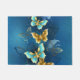 Composición de vuelo, joyería, oro y mariposas oscuras sobre fondo de joyería texturada. Mariposa dorada.