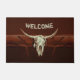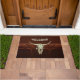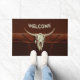 Calavera de toro campiña vaquero del oeste viejo rústico de bienvenida doormat de la cocina. Decoración de una casa de campo marrón vintage. Antiguo estilo vaquero del oeste. Guay, moderno diseño de animales de granja. Derechos de imagen de Marg Seregelyi Photography.