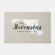Moderna casa de campo personalizada doormat con su nombre familiar dentro de su mapa estatal. Fondo de textura de tela burlap falso. Haga clic en Personalizar para agregar su propio texto e imágenes y crear un diseño único de un tipo.