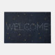"Bienvenidos" en tipo estrella tipo fuente decorativa sobre fondo celeste oscuro