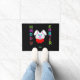 Pueden admirar uno de mis dibujos de Pascua que llamo "Conejo de Pascua", de un adorable conejito blanco esponjoso con orejas disquetas con una corbata de arco rojo y ojos azules en el cielo, añadidos a esta alfombra de puerta. Esta alfombra de puerta hace los saludos perfectos de Pascua para cualquiera.