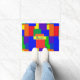Aquí se encuentra una cómoda alfombra de puerta colorida con un diseño de tejido de mosaico en tonos arcoiris con un aspecto texturado. Personalice o quite fácilmente el texto.