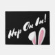 Estera de puertas blancas y negras con adorables orejas de conejito blanco y rosa que dicen "¡Suéltalo!". Excelente adición de temporada a la entrada o al porche delantero.