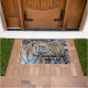 Esta es una foto de un bello tigre de Bengala en una alfombra de la puerta.
