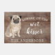 Es gracioso tener cuidado con el besador mojado" estera de la puerta de Pug Dog colocado en un marco rústico falso. Visite nuestra tienda para ver una gran variedad de panes de perro