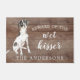 Es gracioso tener cuidado con el besador mojado" tapete de puerta de perro pintor inglés colocado en un marco rústico falso. Visite nuestra tienda para ver una gran variedad de panes de perro