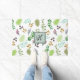 Esta bonita alfombra de puerta botánica personalizada de primavera presenta un follaje acuático en tonos verdes, dorados, acuáticos y grises. Flores negras rosadas y violetas completan este fresco diseño de campo. En el centro, hay una plaza verde salada en la que se puede elegir la opción inicial.