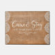 Una moderna alfombra de puertas caligráficas que te hará sentir bien. Un gran regalo para recién casados o nuevos propietarios de casas, nuestro personalizado viene y se queda doormat en elegantes funciones de burlap y lace "Come and Stay" en un moderno y elegante guión de caligrafía escrita a mano. Personalice el nombre de su familia con letras clásicas en blanco. Diseñado para ti por Blackberry Boulevard.