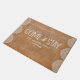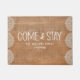 Una moderna estera rústica de 18x24 puertas que te hará sentir como en casa. Un gran regalo para recién casados o nuevos propietarios, nuestro personalizado viene y se queda doormat está en una elegante arpillera y encaje con "Come and Stay" en una moderna letra rústica escrita a mano. Personalice su nombre familiar con letras blancas clásicas. Diseñado para ti por Blackberry Boulevard.