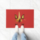 La audaz cara dorada de unicornio con fuertes azotes negros y toques dorados sobre fondo rojo es una "primera impresión" perfecta para todos sus huéspedes.
