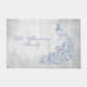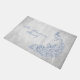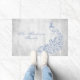 Añada un toque elegante a su puerta con una estera de puerta personalizada con pavo real azul claro. El diseño de la alfombra de la puerta presenta un pavo real azul claro, una suave parra blanca de hojas contra un fondo gris claro con un área para personalizar con el nombre de su familia. Artículos de regalo adicionales disponibles con este diseño así como una variedad de colores.