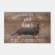 Es gracioso tener cuidado con el besador mojado" estera de puertas de perro negro y tan dachshund ambientada en un rústico fondo falso. Visite nuestra tienda para ver una gran variedad de panes de perro