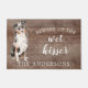 Es gracioso tener cuidado con el besador mojado" tapete de la puerta del perro pastor australiano sobre un rústico fondo falso. Visite nuestra tienda para ver una gran variedad de panes de perro
