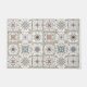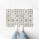 Cubierta / alfombra con una serie de nueve (9) baldosas de estilo español diferentes en color neutro, mosaico.