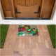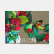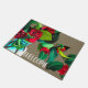 Una estera de bienvenida florida con flores de Camellia, una acuarela original de la artista Sacha Grossel contra un fondo de color tierra y personalizable con un cartel de bienvenida. Una puerta de bienvenida acogedora y dulce es perfecta para tu casa.