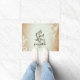 El doormat de las escrituras cristianas inspiradoras representa un fondo abstracto vintage azul claro y marrón. Presenta la Biblia Verse Matthew 19:26, "Con Dios todas las cosas son posibles". *