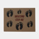 Bienvenidos a la puerta con esta alfombra de entrada con huellas/