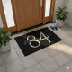 Bienvenido a este moderno hotel, con un número atrevido de casa numérica junto a un elegante texto sobre un elegante fondo negro. El gran tipo de letra monogramado y la paleta de colores minimalistas en negro, blanco y gris crean una declaración contemporánea para cualquier nuevo hogar o entrada elegante. Personalizar con su propio número y mensaje para un toque personalizado y sofisticado.