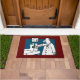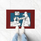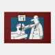 Funny Médico con su Stethoscope está escuchando los pies de un paciente. Doormat médico.