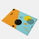 Guay, arte único, moderno, de diseño, de patrón de ilustracion abstracto urbano hecho con formas geométricas al estilo de Memphis. Arte de diseño gráfico de estilo hipster, moderno, lúdico y colorido. Los colores amarillo y negro están sobre fondo azul / naranja.